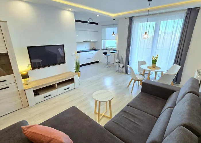 1-pokojowy apartament jest prawie 10 min jazdy od Morskiego Oka. Do centrum Kołobrzegu można dojść spokojnym krokim w kilka minut.